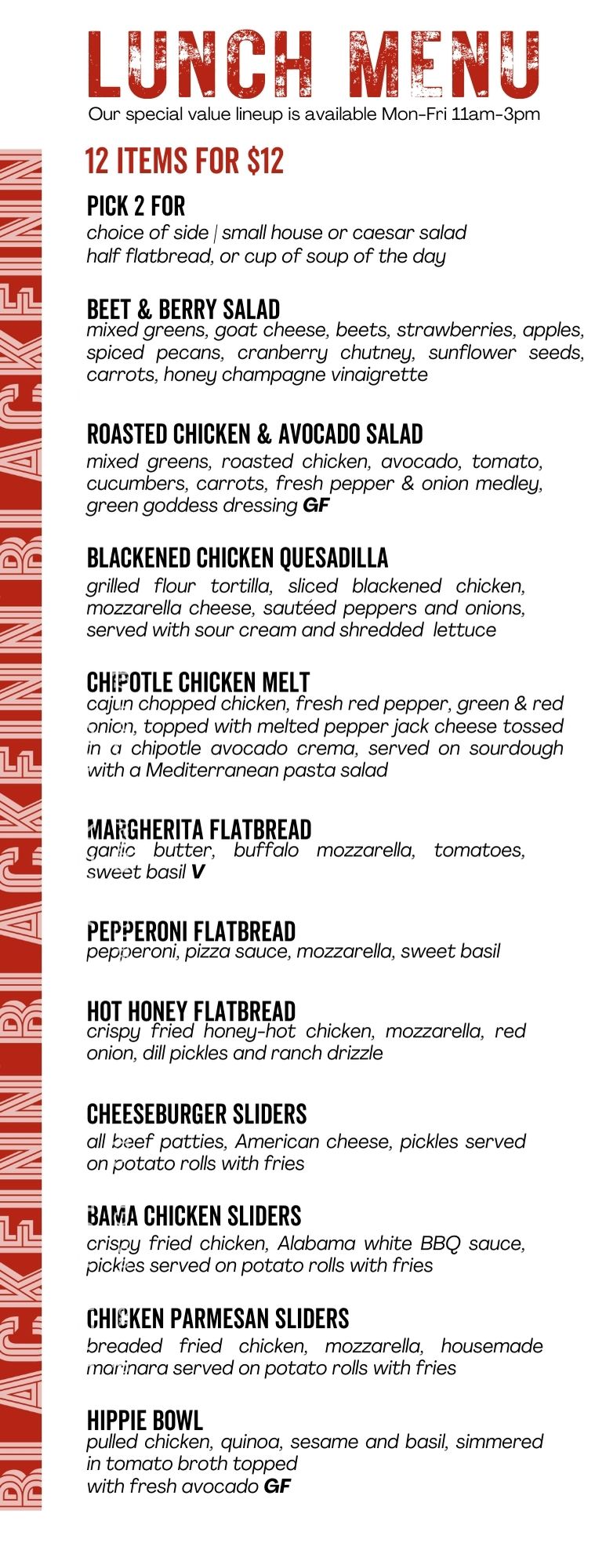 Available for dine-in only, Monday-Friday 11am-3pm.